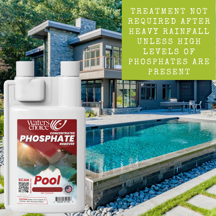 the most effective and powerful solution for eliminating phosphates from your pool water. When introduced into the water, the product may cause a temporary white cloudiness in the treated area, indicating elevated phosphate levels. This cloudiness typically persists for 24-48 hours, with the duration influenced by the initial phosphate levels in the water.